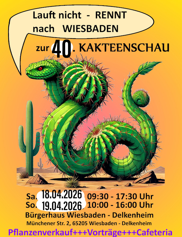 Das Begleitheft der Kakteenschau 2025, die Kaktusblüte, ist auf Wunsch noch erhältlich. Bitte eine Bestellung an unsere Email Adresse (siehe Seite Kontakt zum Verein) schicken und 6€ (incl. Versand an Adresse in Deutschland) an unsere Vereinskasse überweisen. Größere Stückzahlen und Auslandsversand bitte anfragen.