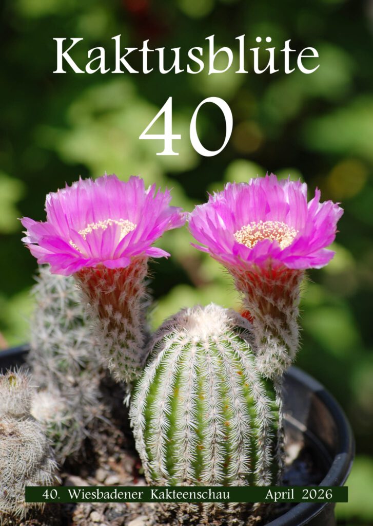 Die Begleithefte der Kakteenschauen 2025 und 2026, die Kaktusblüte, sind auf Wunsch noch erhältlich. Bitte eine Bestellung an unsere Email Adresse (siehe Seite Kontakt zum Verein) schicken und 6€ pro Heft oder 10€ für beide (incl. Versand an Adresse in Deutschland) an unsere Vereinskasse überweisen. Größere Stückzahlen und Auslandsversand bitte anfragen.